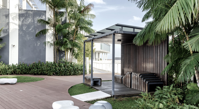 옥상정원에 운동트랙을 만들어 상쾌한 전망과 함께 조깅할 수 있는 공간